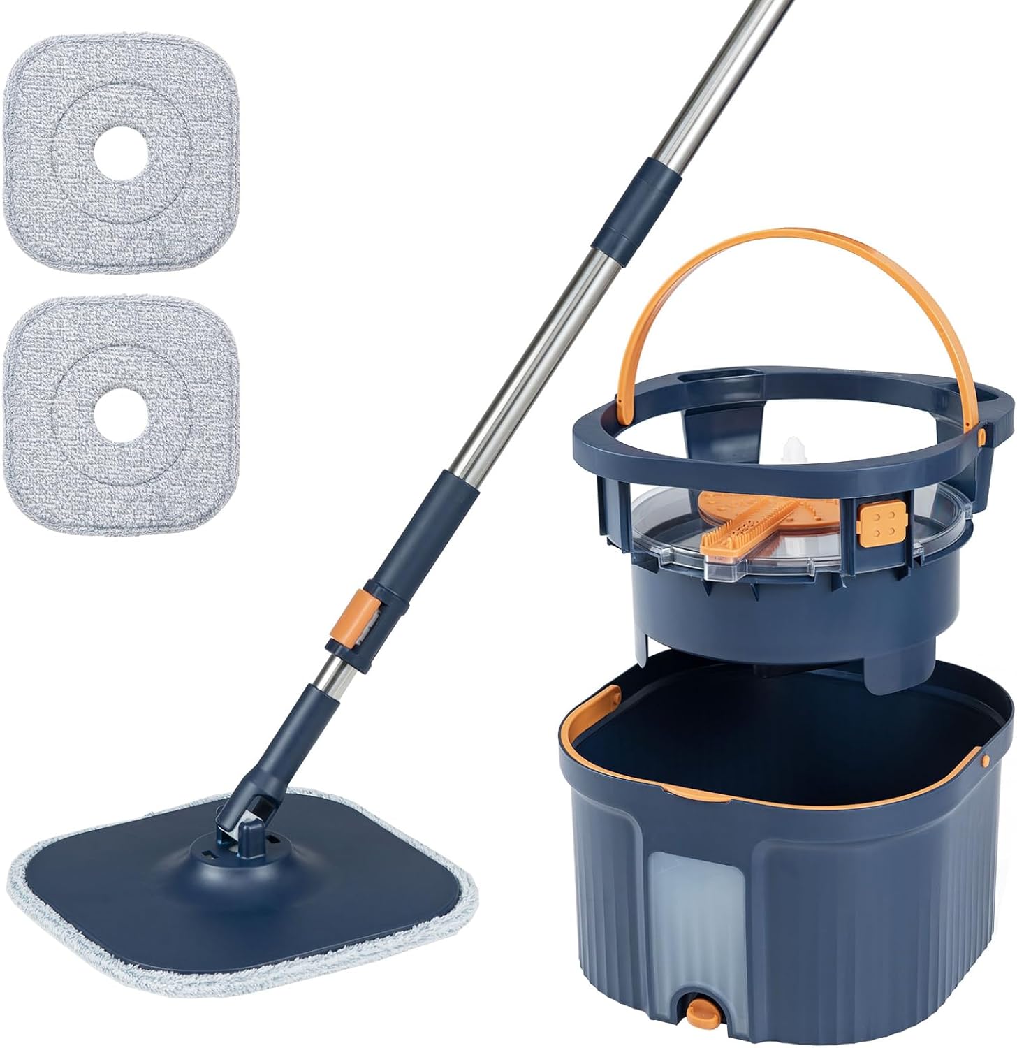 Clean and Dirty Water Separation System: The spin mop and bucket set features dual chambers that effectively separate dirty and clean water. This innovative design ensures that you always mop with clean water, avoiding cross-contamination and resulting in more thorough floor cleaning.