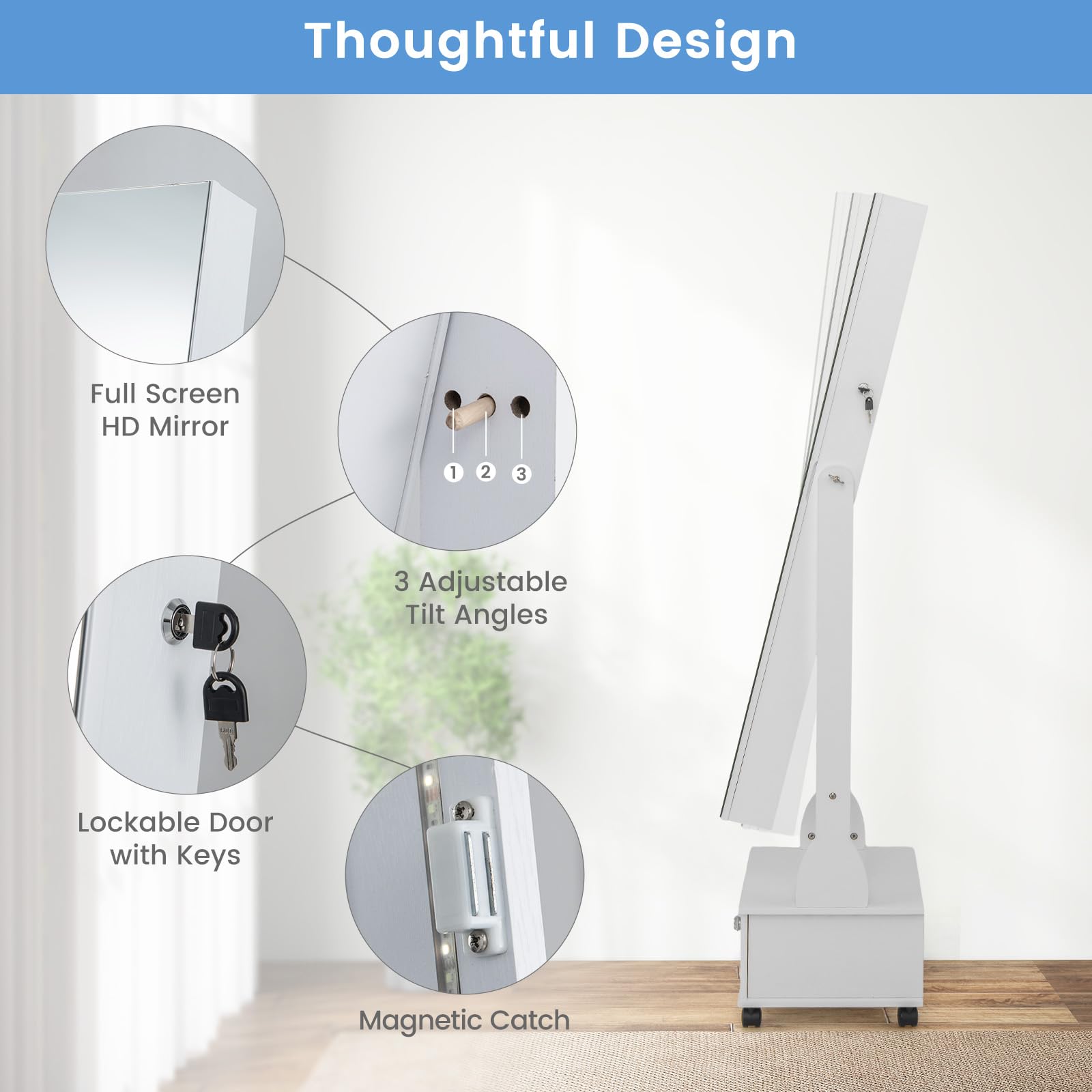 Standing jewelry armoire with full-length mirror led lights and drawers