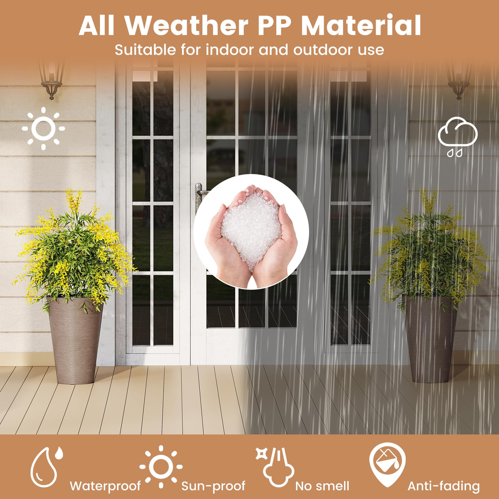 Thanks to the removable inner bucket, complemented by retractable handles, transplanting your greenery or refreshing the soil becomes an effortless task. Designed to cater to the needs of gardening enthusiasts and plant lovers alike, these pots feature a cleverly integrated self-watering system that efficiently manages the water needs of your plants. Moreover, the inner bucket features 48 drainage holes to promote air circulation and prevent water accumulation, thus ensuring plants to grow healthily. Crafted from low-maintenance PP material, these pots are built to withstand various weather conditions, making them a great choice for any location, whether it be your balcony, office, garden or living room. Additionally, the bottom drainage hole comes with a plug to prevent the risk of leakage when used in indoors.
