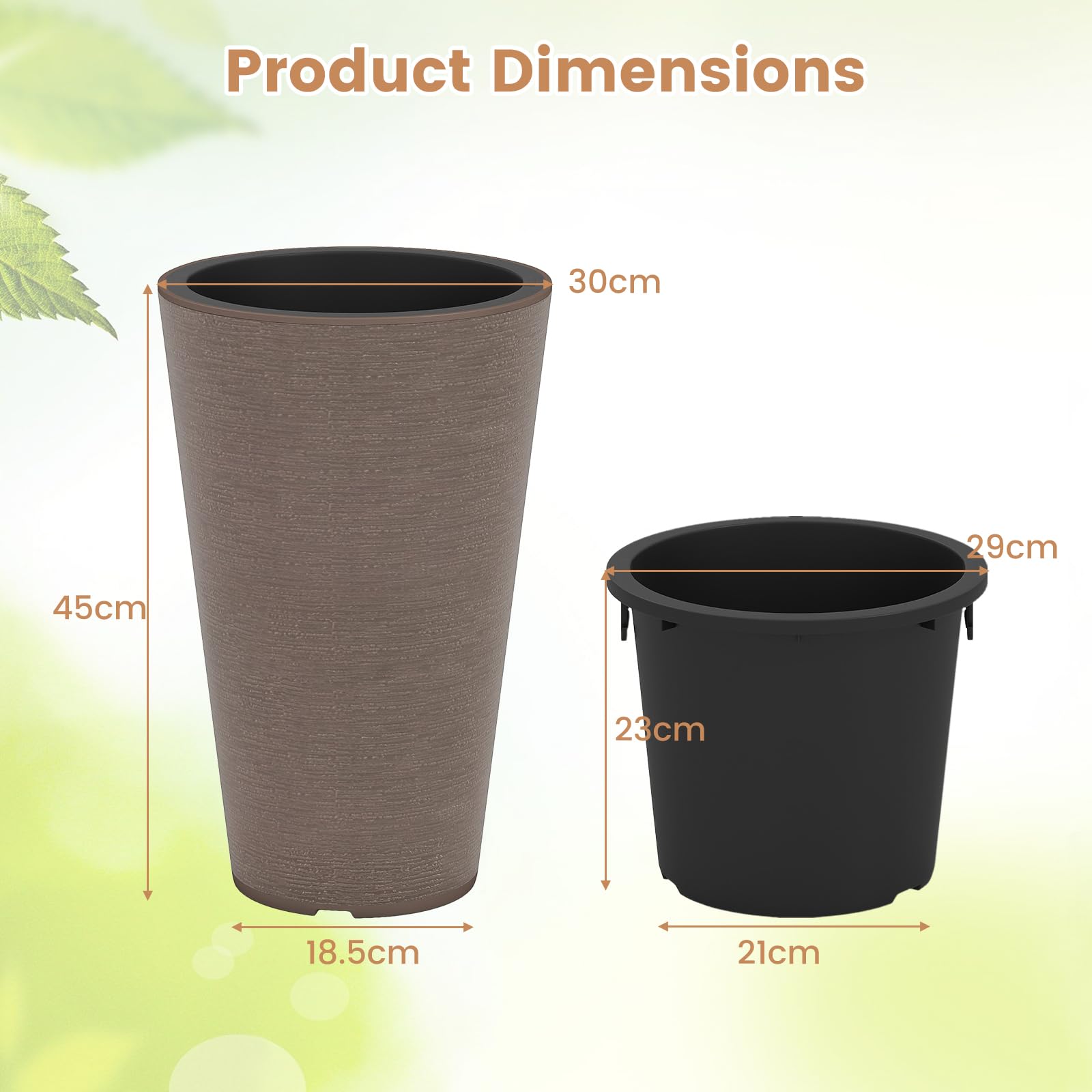 Tall round planter set of 2 with removable inner bucket and drainage holes