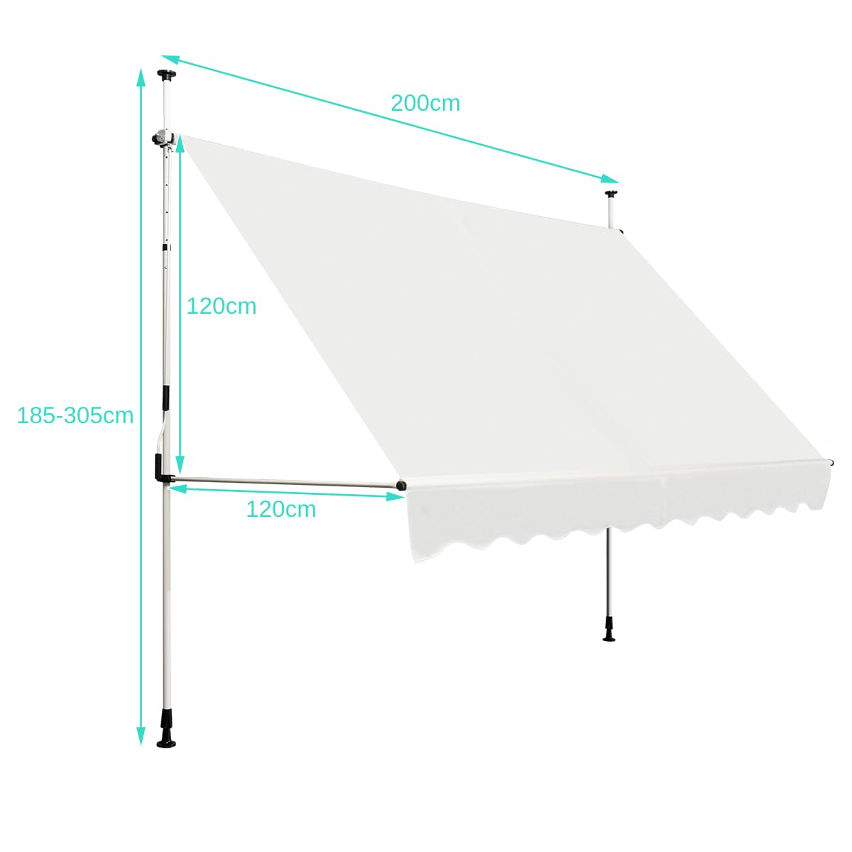 Adjustable Tube and Hand Crank: The height of the aluminum tube can be adjusted from 185cm to 305cm according to your actual needs with rotary knob at side. Coming with the manual crank, the angle of the awning can be telescoped according to your needs. No matter where the sun is, it can cover the sun well.