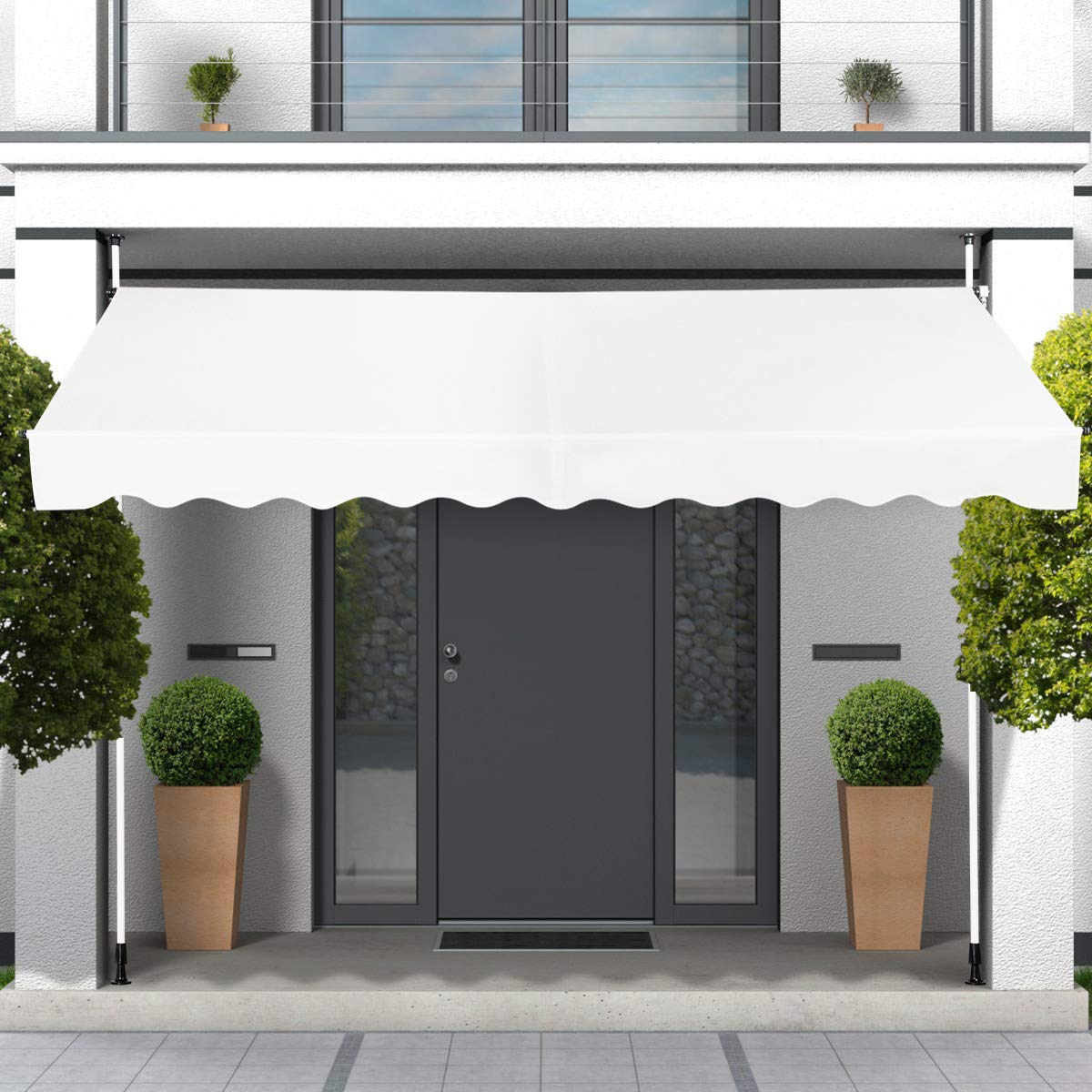 Wide Range of Application: Coming with the modern design and classic color, the retractable awning can not only block out the hot sun but also is a nice decoration for your space. It is ideal for installing on windows, balcony, courtyard, patio, outdoor cafes and restaurants with back porches.