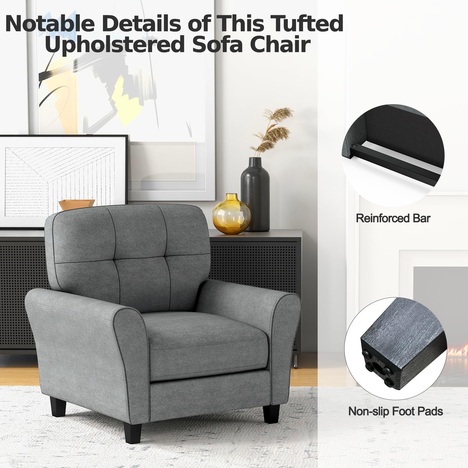 Comfortable Sitting Experience: This upholstered single sofa chair is covered with breathable linen fabric and filled with a soft sponge. Thus, you can feel cozy and relaxed when sitting on it. Moreover, the inner spring pockets enhance softness.