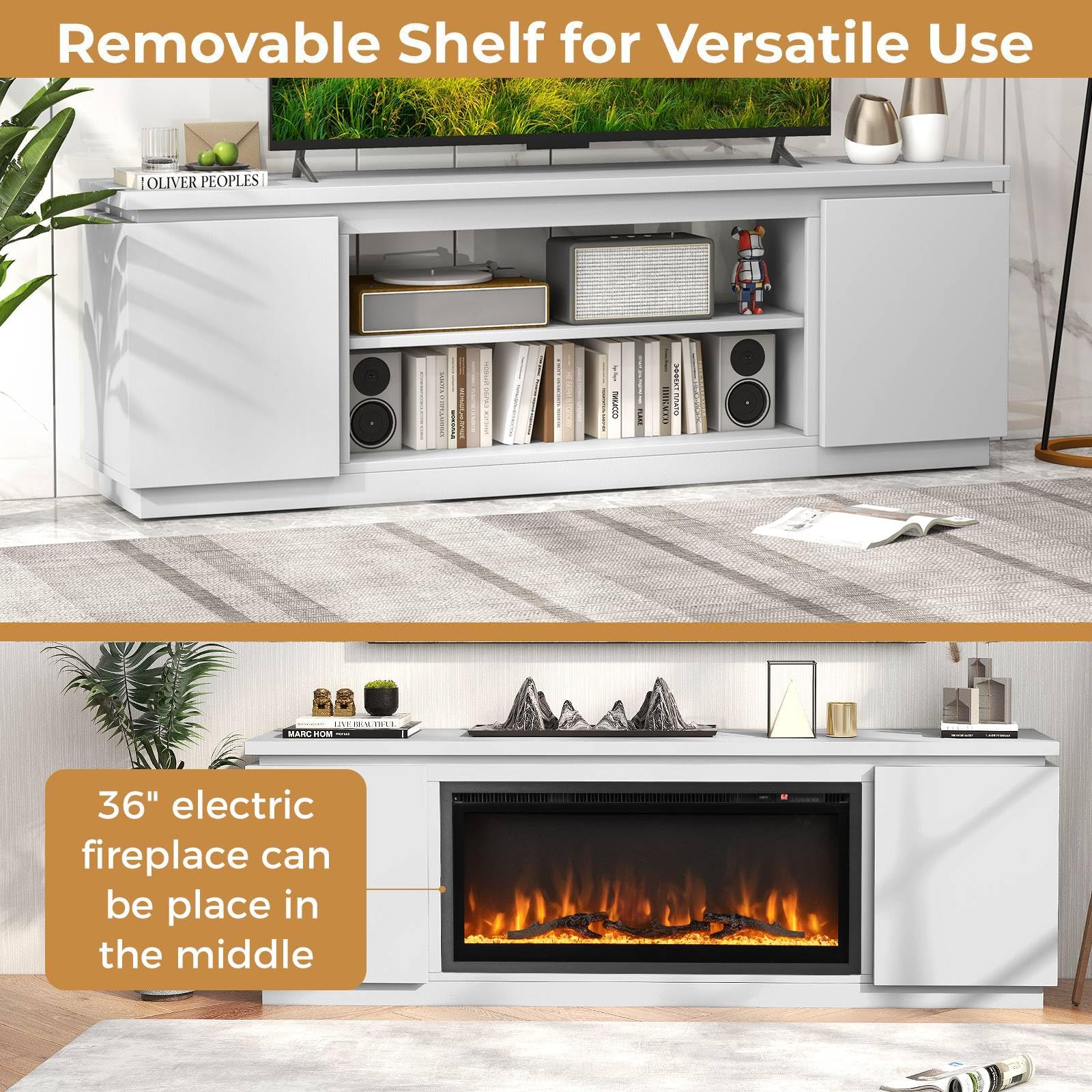 Adjustable & Removable Shelves: The TV cabinet features three 5-level adjustable shelves, each position spaced 3cm apart. For an extra touch of warmth, the middle shelf can be removed to accommodate a 36” electric fireplace (not included).