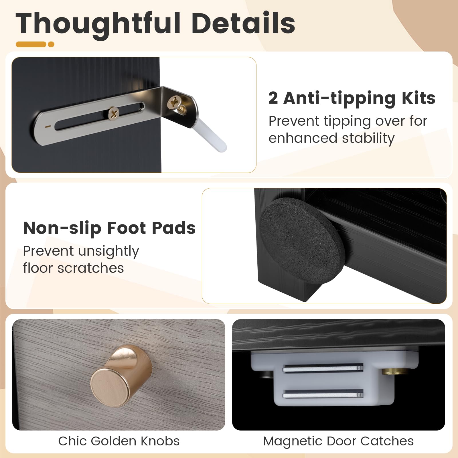Rock-Solid Safety: Crafted from thick boards, the tabletop of this TV cabinet supports up to 95 kg, while 2 anti-tip kits and non-slip foot pads guard against wobbles and spills. Your setup stays locked in place and worry-free!
