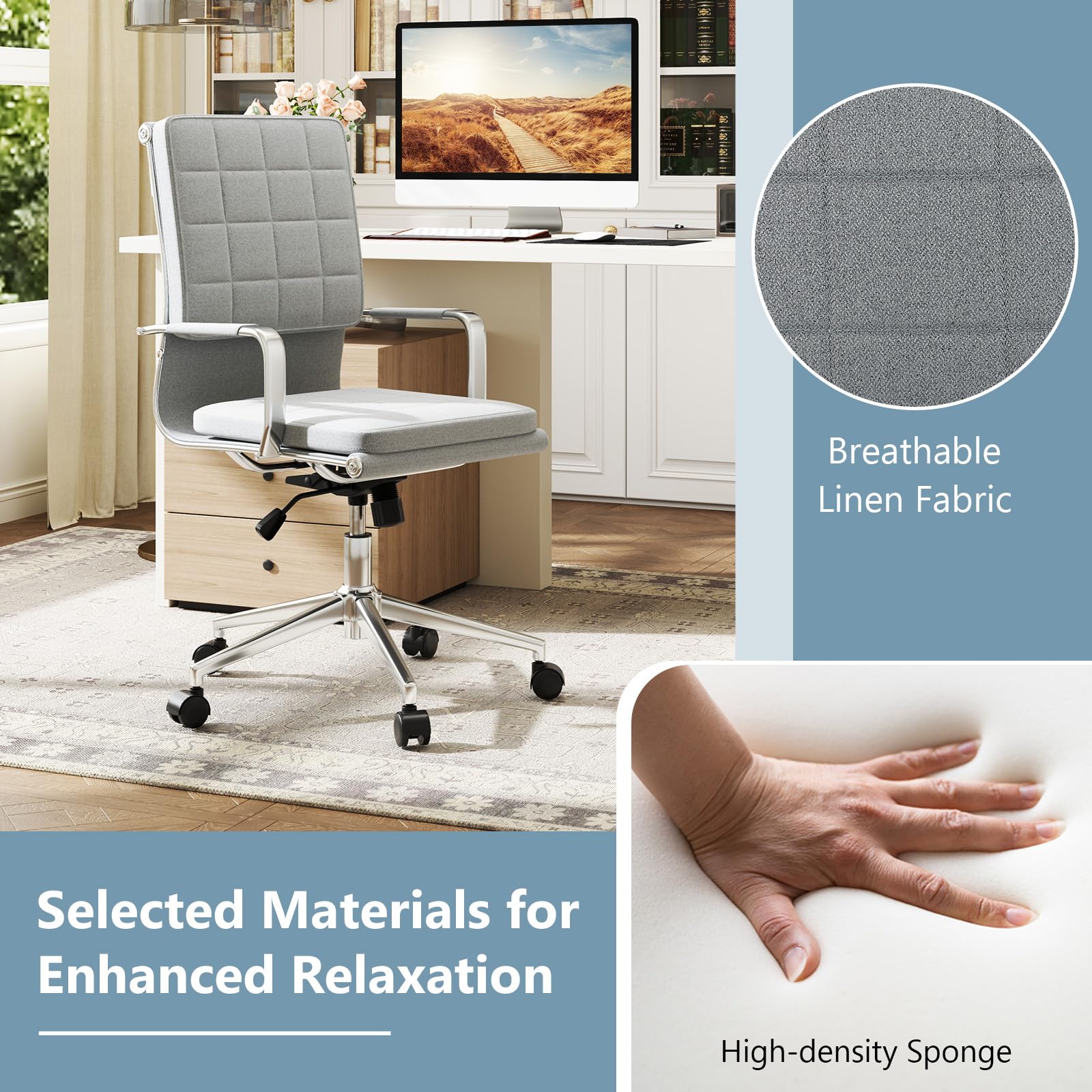 Cozy Sitting Experience: Upholstered in breathable linen fabric, the computer desk chair adds a touch of elegance while providing a soft surface. Beneath the fabric, a layer of sponge padding offers a plush seating experience.