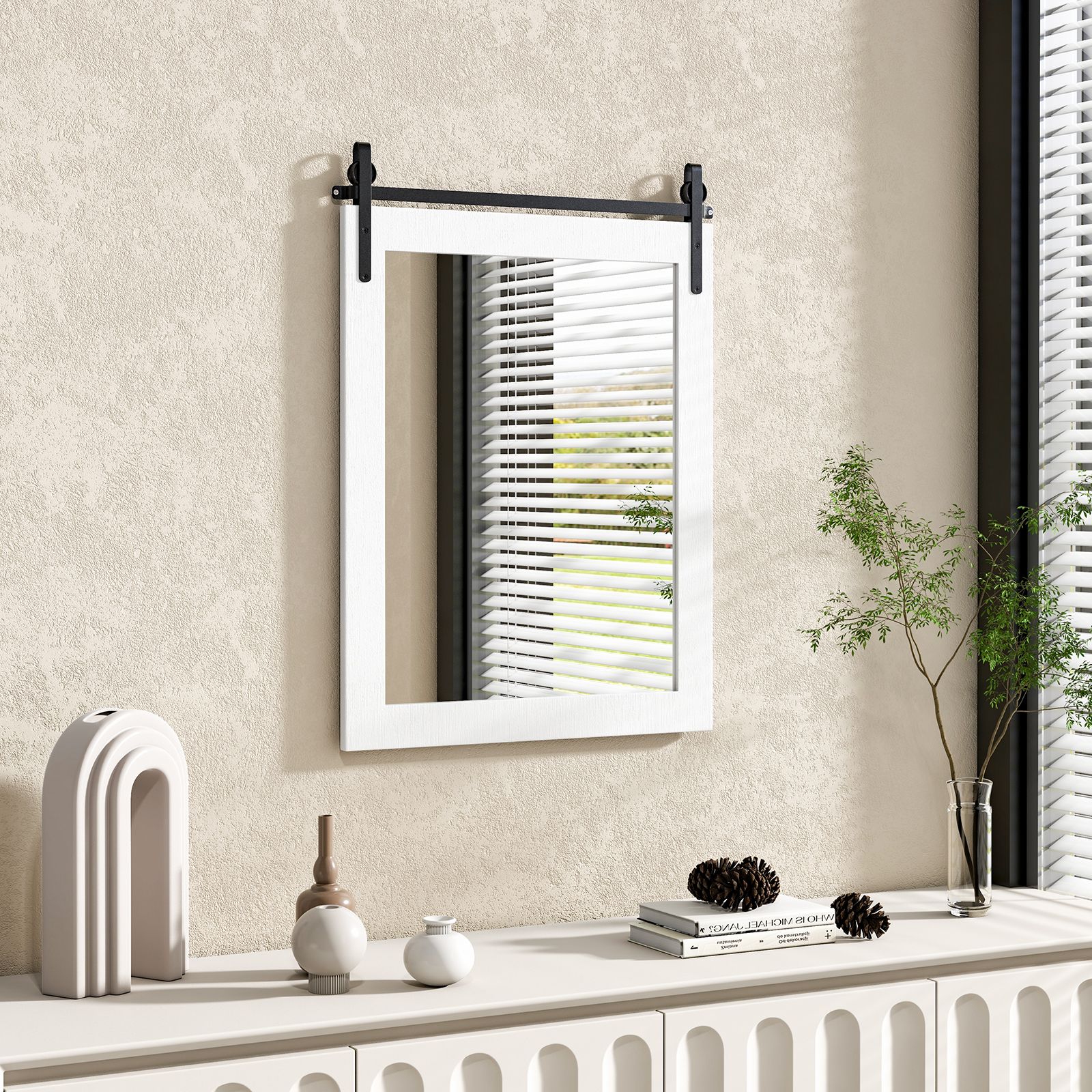 Bring Elegance to Any Room: This farmhouse style wall mirror can brighten up your living space and offer a clear reflection from any angle. Besides, it can also serve as a decorative mirror or vanity mirror in any room of your home, such as bedroom, bathroom, living room, entryway, makeup room, etc.