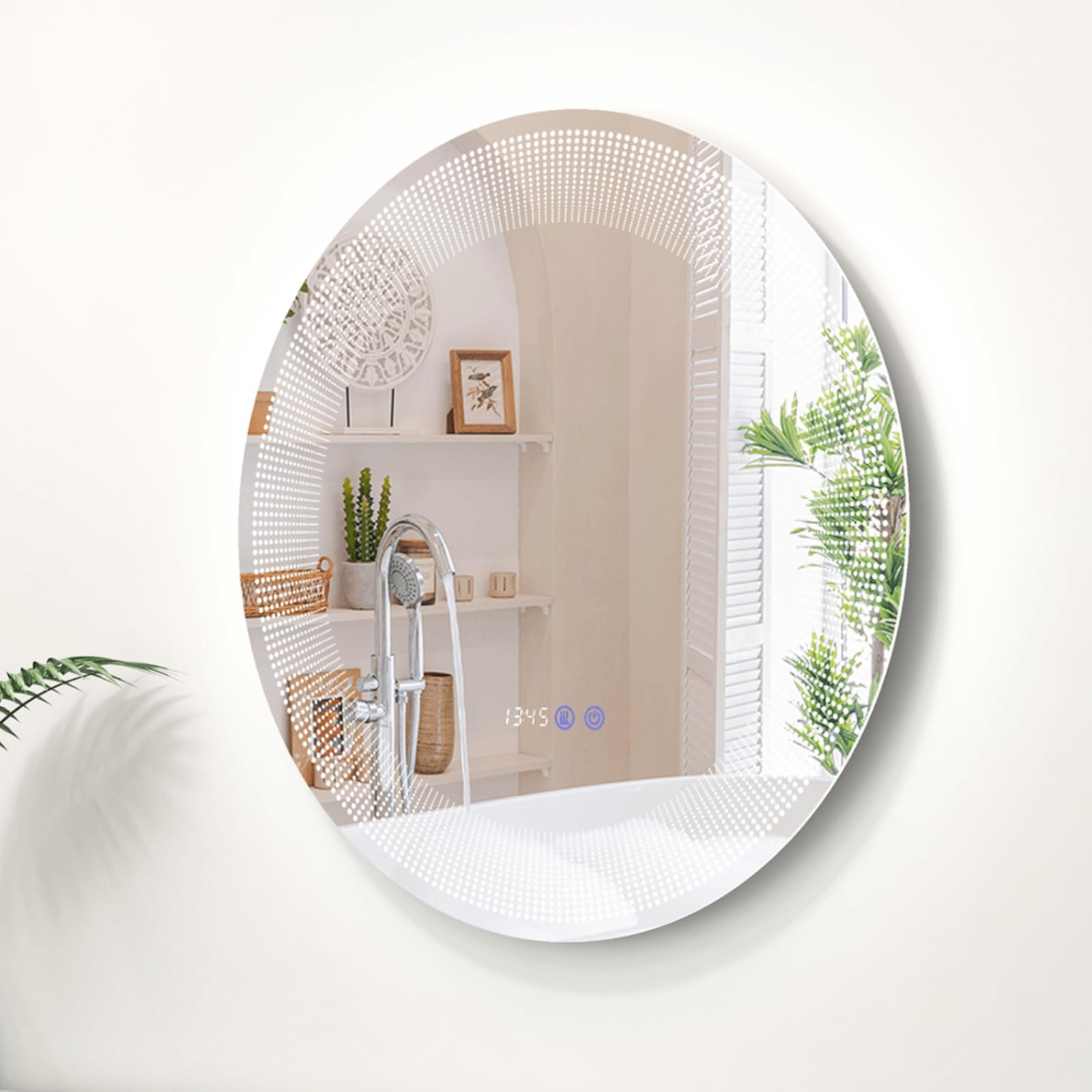 Stylish Wall-Mounting Mirror: The radial LED lights and high-definition mirror with a frameless design add a touch of sophistication, transforming your bathroom into a stylish oasis. The package includes accessories for wall mounting. There are 2 connection options: plug-in or hardwired to use the wall switch.