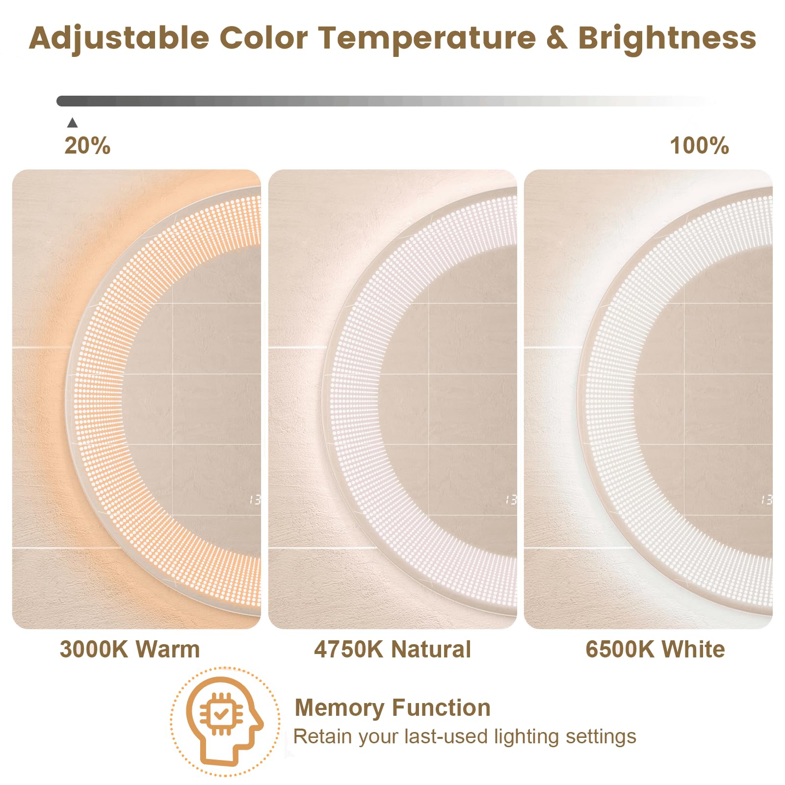 Adjustable Lighting Option: You can enjoy the flexibility of 3 color temperatures (3000K warm, 4750K natural, 6500K cool) with 20%-100% adjustable brightness settings. Plus, the built-in memory function will make it retain your last-used lighting settings.