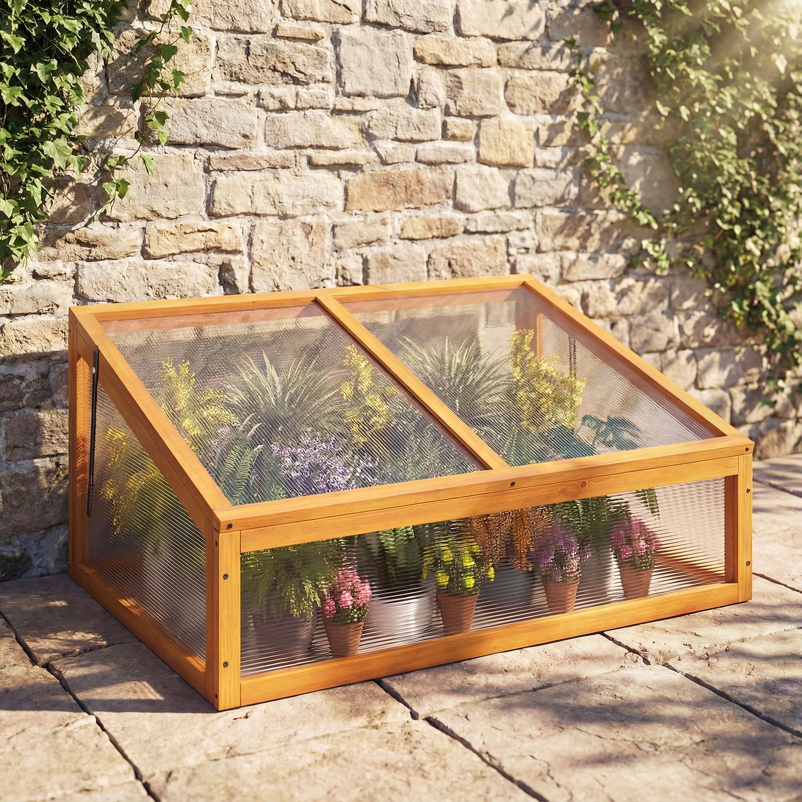 Wood Greenhouse, Garden Polycarbonate Cold Frame with Transparent Flip-top Roof