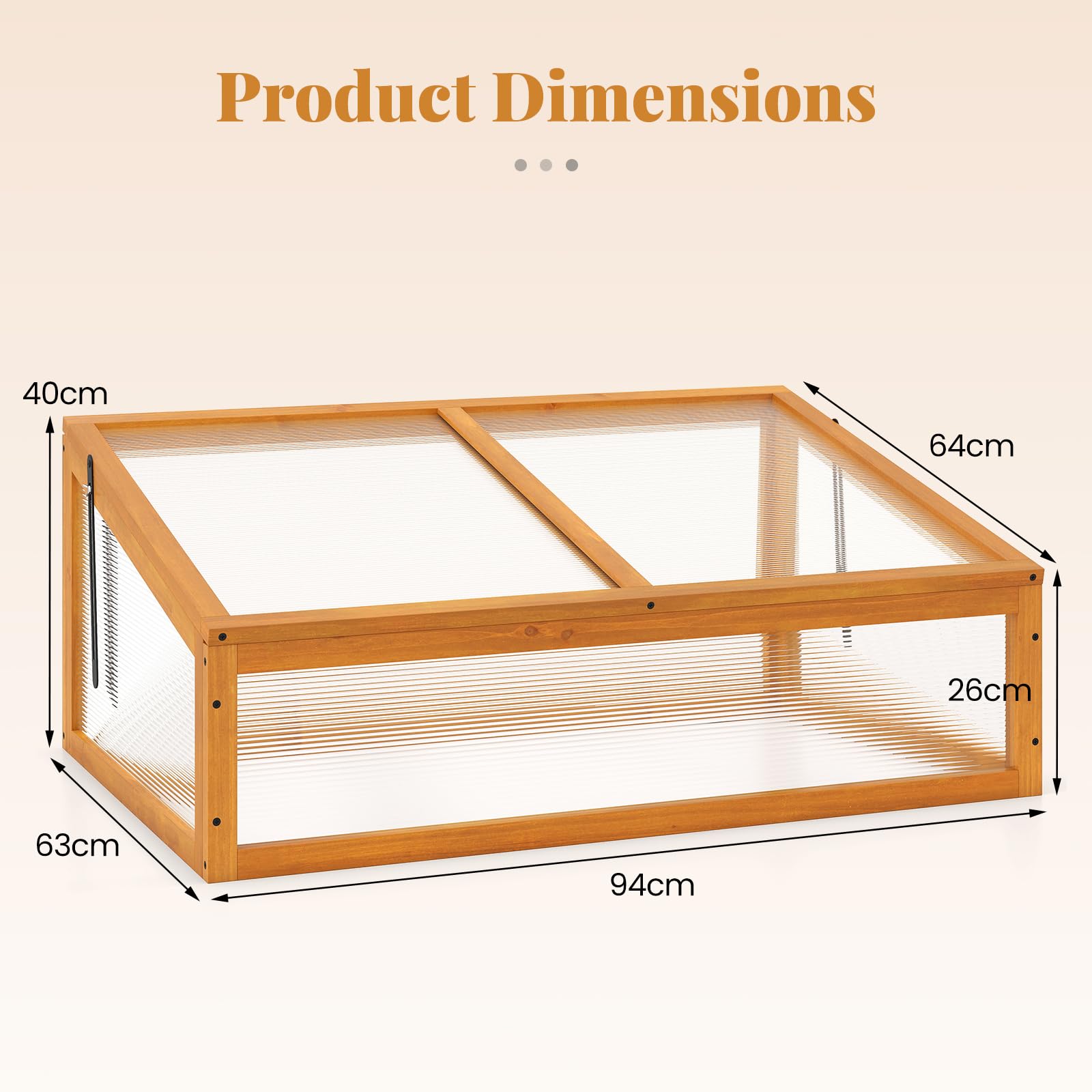 Crafted from natural fir wood, the portable greenhouse is highly resistant to warping, ensuring lasting performance. The openable roof complete with a flexible metal hinge, allows you to effortlessly adjust ventilation and maintain the perfect temperature for your greenery. Transparent panels provide exceptional cold protection while safeguarding your plants from harsh sunlight. The thoughtfully sloped roof keeps leaves and debris from collecting, minimizing maintenance and keeping your space tidy. A beautiful natural wood grain finish enhances any setting, lending a rustic charm to both indoor and outdoor spaces.