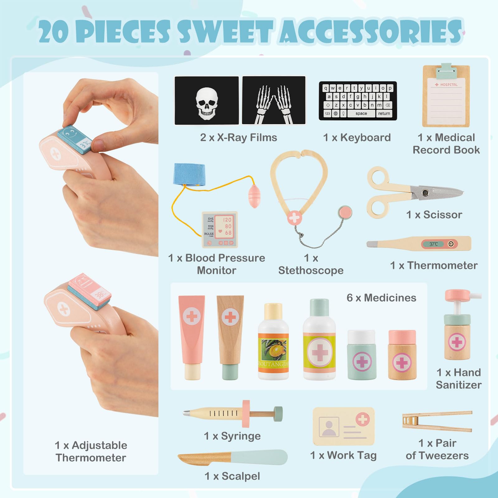 Reliable & Safe Construction: Crafted from kid-friendly, enduring grass-tree wood, this toy medical center set withstands enthusiastic exploration while ensuring daily safety. It is built to last so children can enjoy countless hours of imaginative play with friends and family.