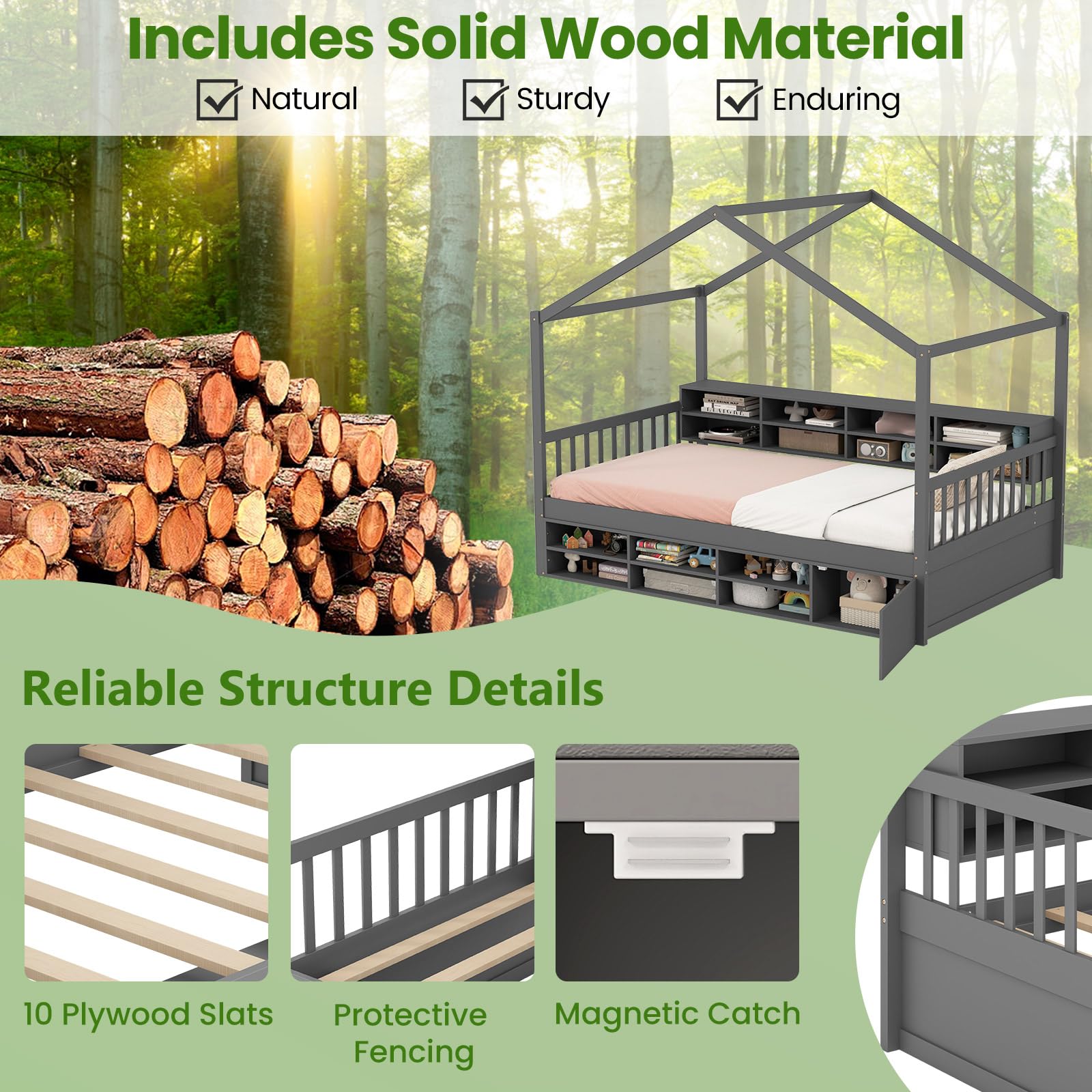 Spacious Bedside Storage: The integrated bedside shelf includes 8 storage cubes and a convenient countertop. Therefore, the house bed can keep kid’s essential items readily accessible and perfectly organized.