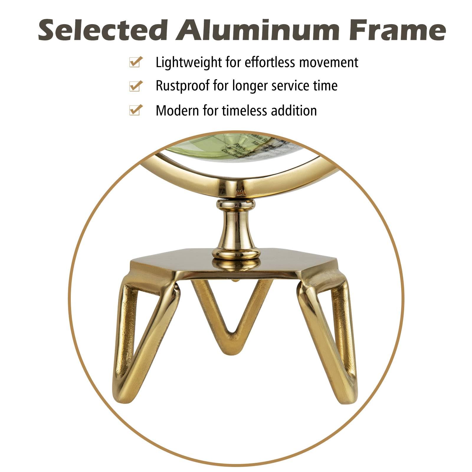 Perfect Indoor Decoration: Designed with a antique appearance and gorgeous golden finish stand, this multi-use globe would go well with any indoor decoration. Moreover, the functional and stylish desktop world map globe also adds a touch of nostalgic charm to school, living room, bedroom or library.